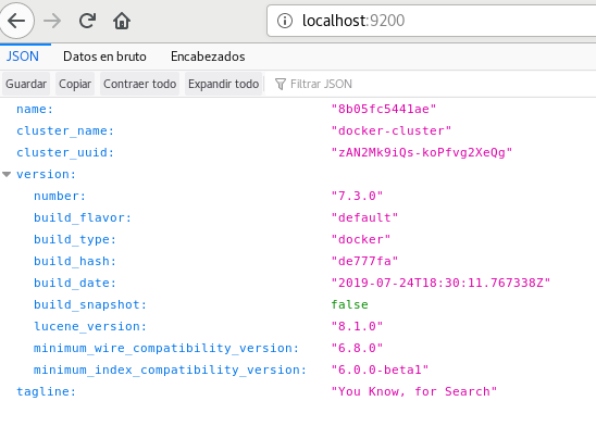 Levantamos nuestro Elasticsearch, de ahora en adelante ES, con el siguiente comando: