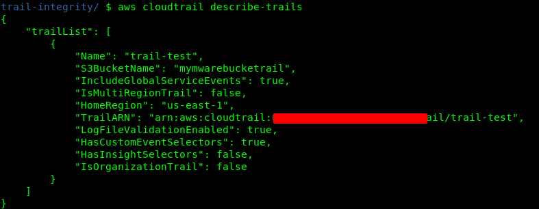 $ aws cloudtrail describe-trails