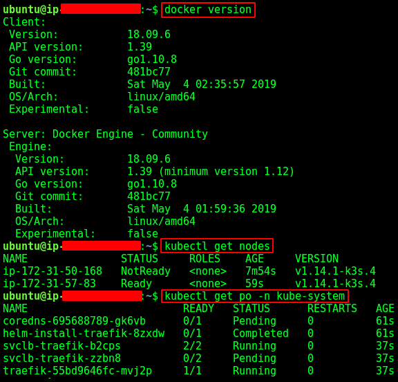 Como vemos en nuestra instancia EC2 basada en la AMI que acabamos de crear, Docker se instaló correctamente, al igual que kubectl, y nuestro cluster k3s se está terminando de levantar. Gracias a Packer pudimos crear una imagen Ubuntu con Docker, kubectl y k3s pre-instalados, en pocos segundos y sin configuraciones ni instalaciones manuales.